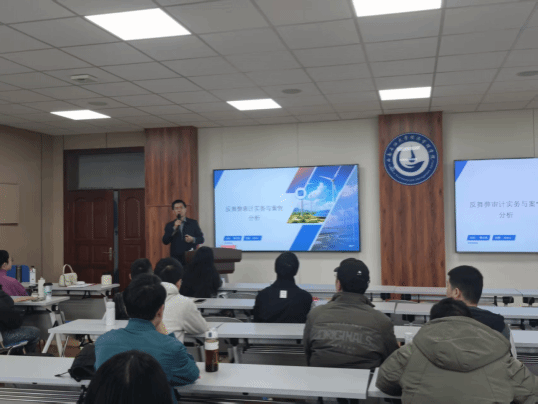 韩士民指出,反舞弊审计是当前审计实务中极具挑战性的领域。他结合实际案例,深入剖析了舞弊行为的核心动因,强调审计师必须深入研究被审计单位的性质、经营模式及委托目的,精准锁定舞弊风险的重点领域,并设计与执行有效的审计程序,以获取充分、可靠的审计证据。在互动环节,同学们围绕企业工作中遇到的具体问题踊跃提问,韩士民耐心逐一解答,并进一步强调了审计人员保持职业怀疑态度、坚守专业操守的重要性。