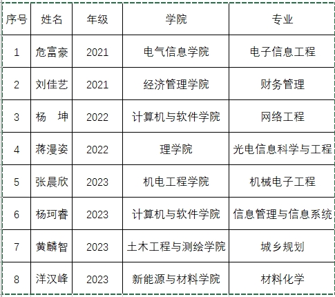 根据《西南石油大学南充校区学生信息员工作实施办法(试行)》,为鼓励先进、表彰工作优秀的同学,经教务部评选,危富豪等8名同学被评为西南石油大学南充校区2023-2024学年优秀教学管理学生信息员,现予以公示。
