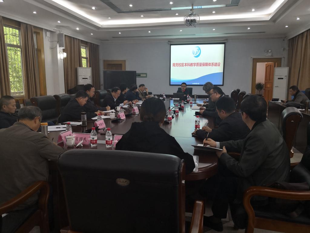 2019年4月15日下午,学校教学评估处处长李小明,学校教学评估与督导委员会专家陈平、庄稼、曾洁、刘建兴、郑悦明、蔡正旗、董事尔、肖国民到南充校区就本科教学质量保障体系建设工作进行了专项调研和座谈交流。校长助理、南充校区常务副校长赵刚、校区领导覃鸿飞、谌海云出席会议,会议由谌海云主持。