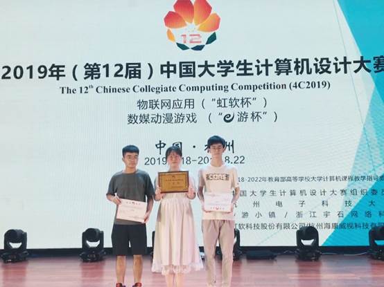 8月18日——21日,2019年(第12届)中国大学生计算机设计大赛“物联网应用/数媒动漫游戏”决赛在杭州举行,信息学院胥林老师指导王文杰、李雨情、潘超凡3位同学参加比赛荣获全国二等奖。