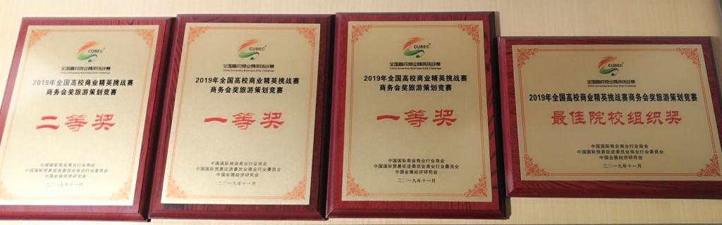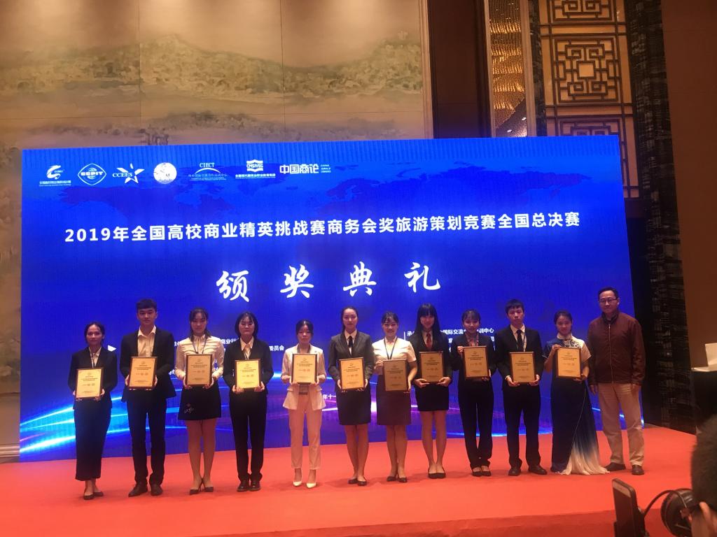 11月2日,全国高校商业精英挑战赛商务会奖旅游策划竞赛全国总决赛在安徽蚌埠圆满结束。财经学院教师肖怡然、张艳萍、方琢钧、彭双四位老师指导酒店管理专业2017级、2018级学子组成 “明月宝璐队”(李思艺、谭琦、王玲、李治红)、“小火车队”(钟小薇、韩子轩、曾炎)、“天线宝宝队”(姚美旭、黄婷婷、何容华、张艳),代表我校参赛。最终,荣获一等奖两项、二等奖一项,我校荣获最佳院校组织奖。同时,在同步举行的实物展洽赛环节,财经学院学子还荣获一等奖两项、二等奖一项(单独设赛区和独立奖项)。