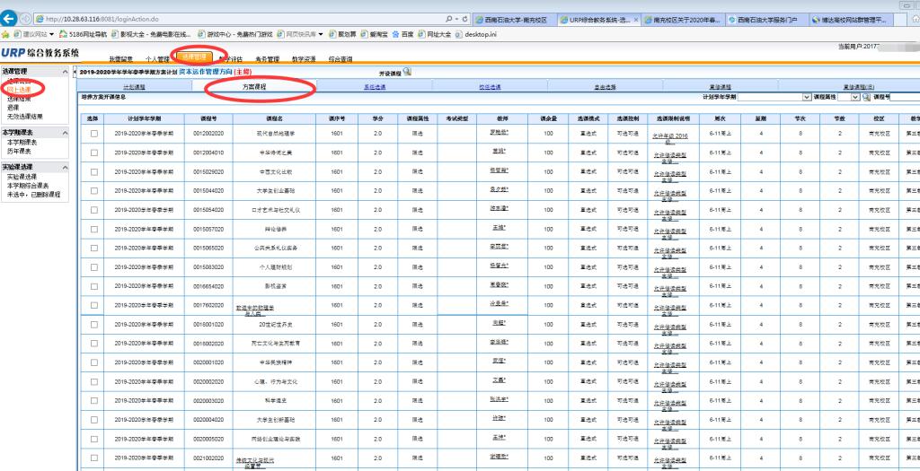 首先用VPN登录校内网,输入教务系统网址http://10.28.63.116:8081/。依次点击导航条中的【选课管理】→【网上选课】,选择培养方案,然后点击【方案课程】,进入文化素质课程选课页面,选择课程点击确定即可。