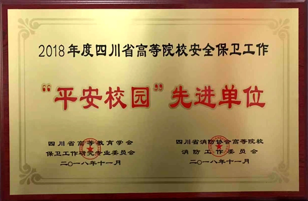 校区荣获2018年四川省高校“平安校园”建设先进单位