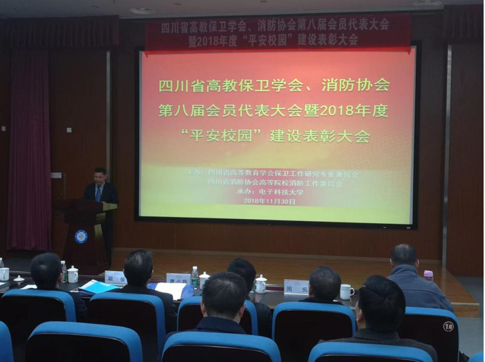 11月29日-12月1日,由四川省高教保卫学会、消防协会主办,电子科技大学承办的“四川省高教保卫学会、消防协会第八届会员代表大会暨2018年度‘平安校园’建设表彰大会”在电子科技大学清水河校区举行,四川省教育厅、公安厅、国安厅、消防总队领导和省内近百所高校分管安全保卫工作的领导及保卫干部代表参加了会议。南充校区保卫部副部长李文、安全消防科科长杜勇等4人参加会议。