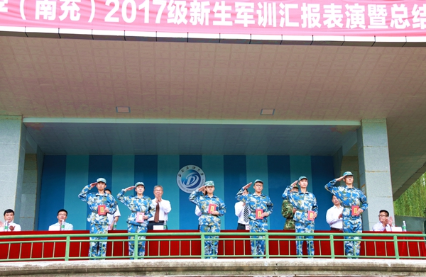 国旗飘飘,铸钢铁意志;军风巍巍,展学子英姿。9月29日下午,南充校区在田径场隆重召开2017级新生军训汇报表演暨总结表彰大会。自此,为期12天的新生军训圆满落下帷幕。