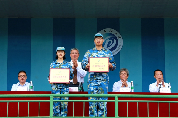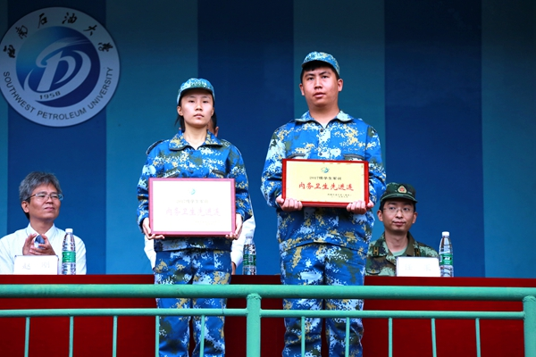 覃鸿飞宣读了《西南石油大学南充校区关于表彰2017级新生军训先进集体和先进个人的决定。赵芯梅等6名同学荣获“优秀通讯员”称号,王子祺等138名荣获“军训先进个人”称号,一连、四连荣获“军事训练先进连”称号,一连、六连荣获“内务卫生先进连”称号。