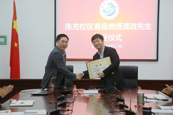 校长助理、南充校区党委常务副书记张光君为龚政颁发聘书