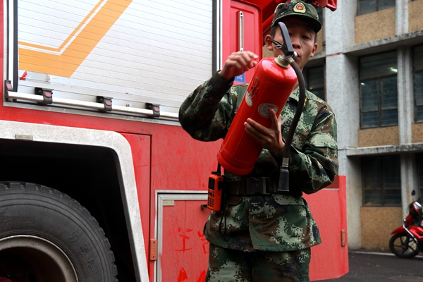 李晓宁讲解灭火器材使用方法