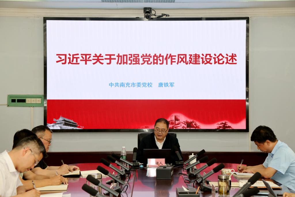 在深入贯彻中央八项规定精神学习教育专题辅导报告会上,中共南充市委党校副校长唐铁军教授应邀到校区作《学习领会习近平总书记关于加强党的作风建设的重要论述》的专题辅导,从“如何看待作风建设、作风建设应聚焦哪些关键、如何有效推进作风建设”三个方面,对新时代加强党的作风建设进行系统阐释,让领导干部对贯彻落实中央八项规定精神,进一步加强党的作风建设有了更全面、更深入的认识和思考。