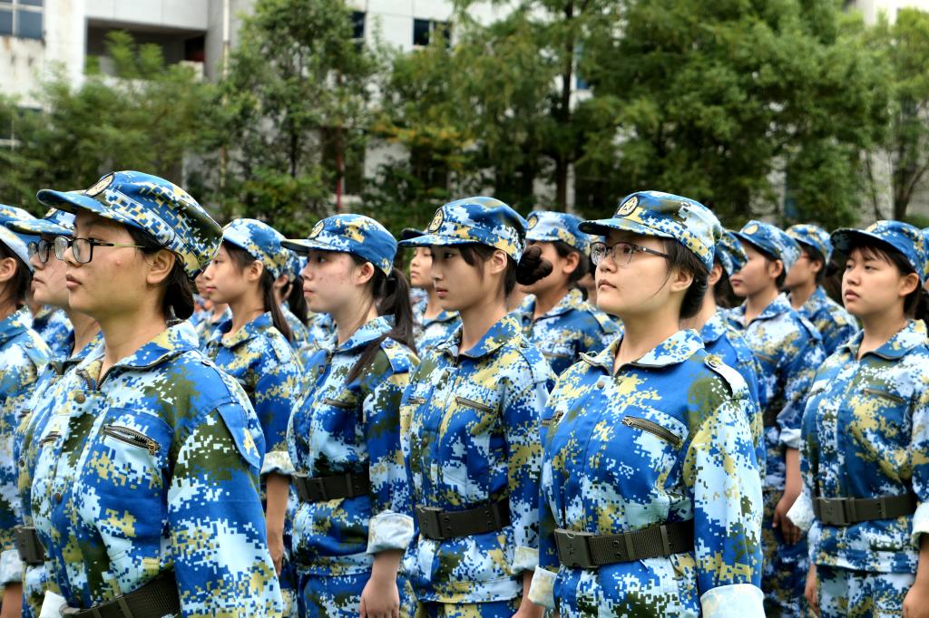 厚重的云层让人喘不过气来,仿佛在向我们耀武扬威,逼迫着我们投降,教官却告诉我们——保持平和的心。密密麻麻的雨点飘洒在我们军帽的前沿,“敲打”着我们,想让我们知难而退。但是,“壮志不畏筋骨苦,着甲拿云恰少年”,恶劣的天气依旧浇不灭同学们热情高涨的斗志。挺拔的脊梁,坚定的眼神,酸痛的双臂,都让我们永远难忘,这段激情的岁月也将成为我们大学四年生活最美的回忆。