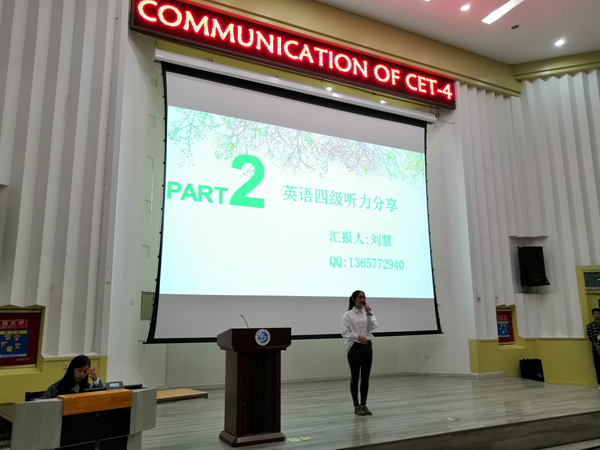 活动中,主讲嘉宾分别从翻译与作文,听力,阅读三个方面分享了自己的考试经验,和大家交流一些方法提高自己的英语水平,并分析了考试流程以及具体的时间安排,活动最后他们现场解答了同学们对于四级备考的疑惑。