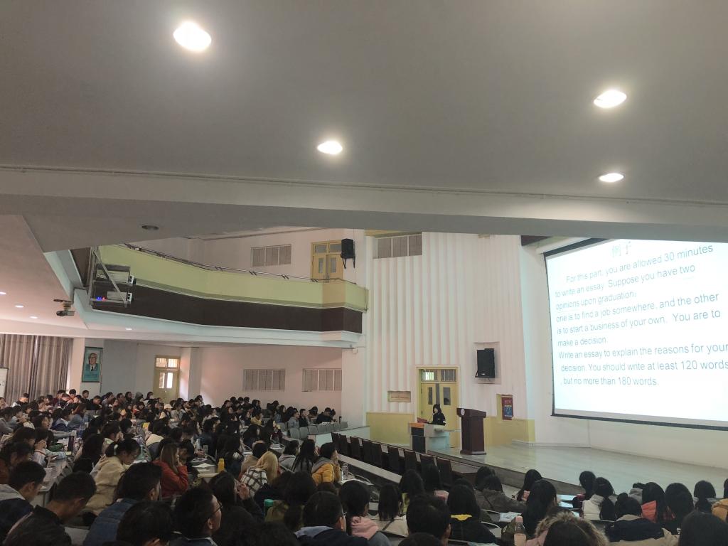 11月8日下午,财经学院在多功能学术报告厅举办了大学生英语四级考试培训讲座。西华师范大学外国语学院杨荃老师担任主讲人,财经学院2018级全体学生参加了此次培训。
