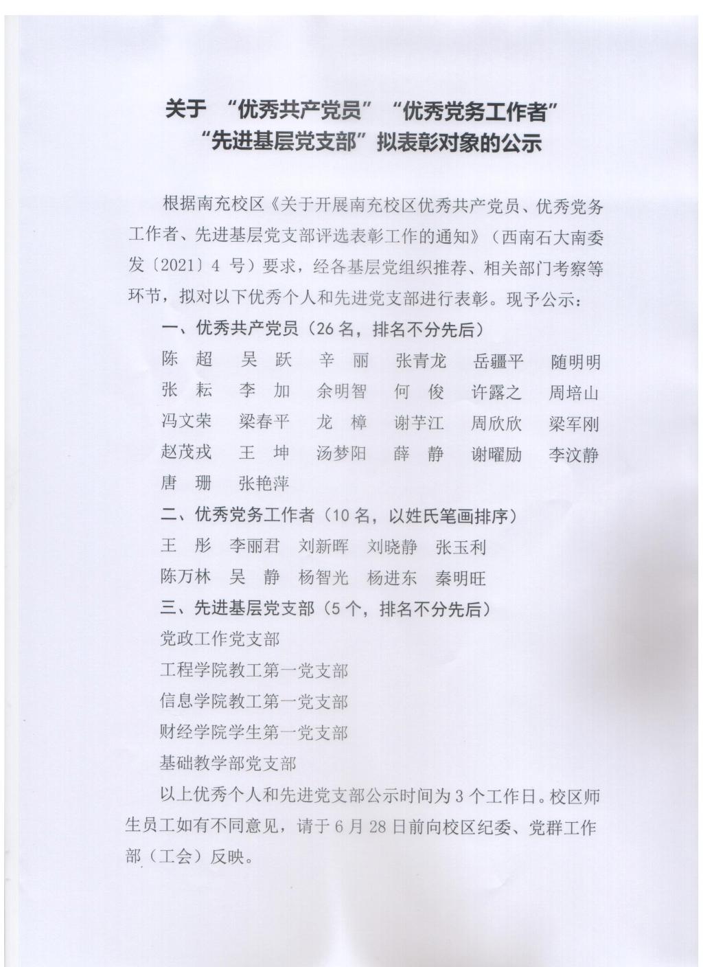 关于“优秀共产党员”“优秀党务工作者”“先进基层党支部”拟表彰对象的公示