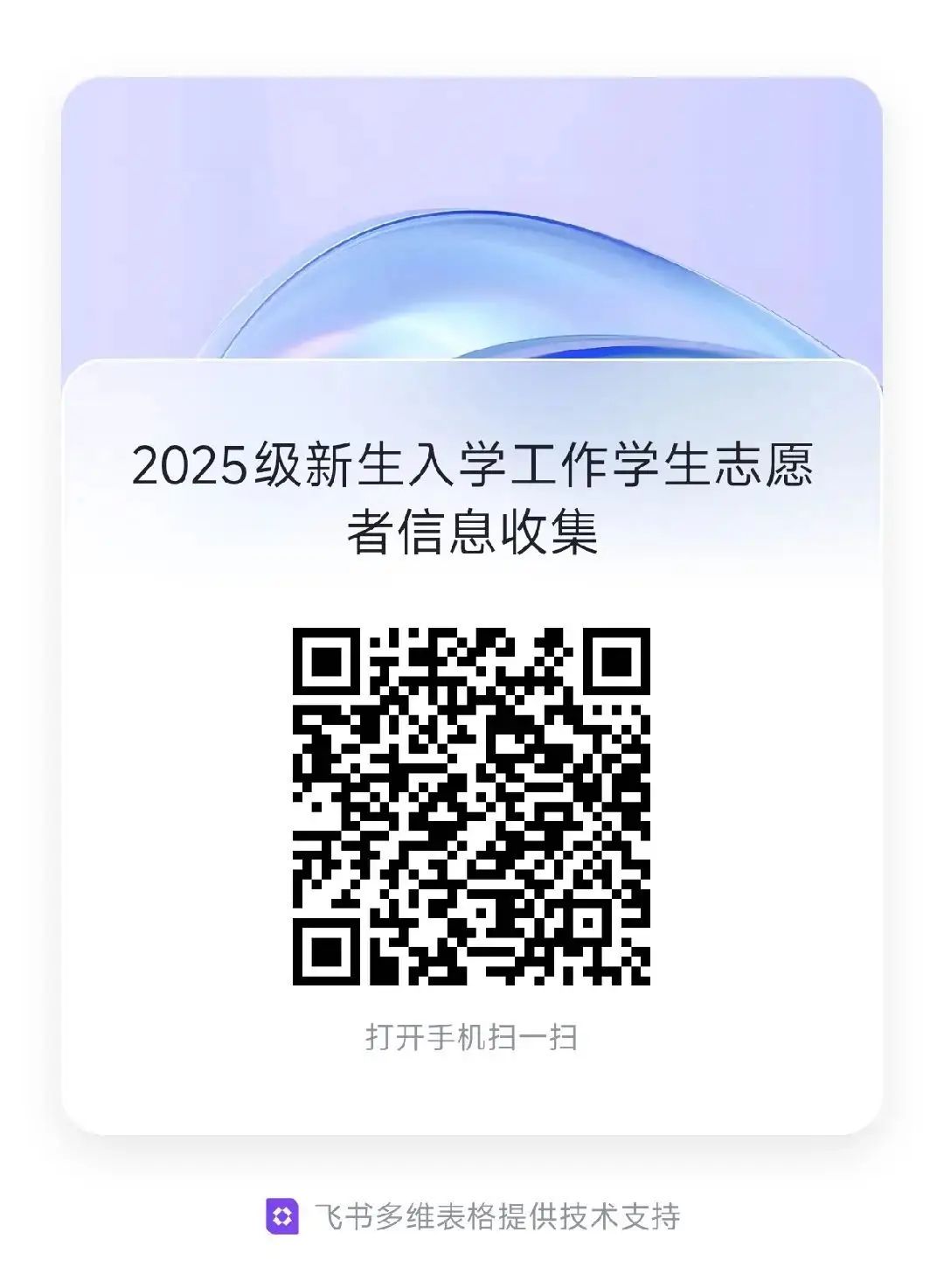 同时,扫描下方二维码加入西南石油大学南充校区2025级新生入学工作学生志愿者飞书群。