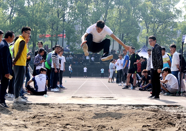 跳远运动员们疾如猎豹的助跑、干净利落的起跳,整个人飞在空中,划出一道经天长虹。落在沙坑,溅起的不是飞土,是激扬的青春。机械电子工程专业2016级的钟文凭借优秀的成绩赢得了男子跳远的第一名;而工程造价专业2017级张敏也夺得了女子跳远的桂冠。她说:“真没想到自己能够取得这么好的成绩,希望自己能不断提高,成就一个更优秀的自己。”虽然只有十几秒的惊艳,却可以让我们感受到他们拼搏努力的精神,一次次的坚持与执着,超越的不只是距离,还有自己。无论结果如何,他们的表现足以证明他们是优秀的。