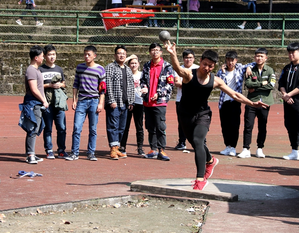 投掷手中的铅球,放飞心中的梦想。运动健儿们稳住自己的身形,高举沉重的铅球,拼尽全力地投掷,铅球犹如枪膛上的炮弹火速地飞了出去。裁判们认真计时,公正评判,现场气氛不断高涨,参加铅球比赛的选手们竞争激烈,越投越远。最后,财务管理专业2017级曾雨溪以6.27米的优异成绩夺得冠军。她告诉记者:“虽然在比赛中受了一点伤,但我还是不后悔参加这个比赛,这次我获得了冠军,很激动也很兴奋。吃得苦中苦,方为人上人,希望大家都可以认真对待生命中的每一件事。”机械电子工程专业的郭子渝也夺得冠军。同时参加了跳远和跳高两项比赛的光电信息与工程专业2016级孙成龙接受采访时说:“作为国旗护卫队的队长,我有责任带领队员们积极进取、突破自我。”