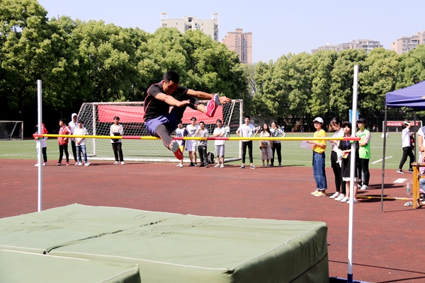 裁判一声令下,运动员就以迅雷不及掩耳之势飞奔了出去,犹如腾起的雄鹰,用身体在空中划出最亮丽的弧度,稳稳的落地,赢来的是热烈的掌声。一次次的腾起,一次次的超越,一次次的欢呼,运动员们留下了一个个激动人心的瞬间。信息管理与信息系统专业2017级的同学李雨薇披荆斩棘,以1.17米的成绩夺得女子跳高冠军。她说:“平时没有进行跳高方面的专业训练,此次取得这个成绩,得益于国旗队的艰苦训练。在日后的学习生活中我一定继续发扬体育精神,努力拼搏!”