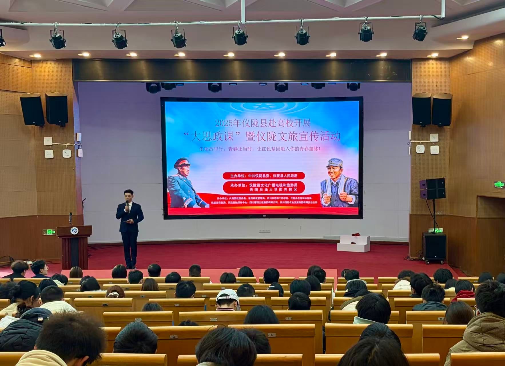 为传承红色精神、深化校地文旅融合,12月28日下午,由仪陇县委、县政府主办,仪陇县文广旅局、南充校区承办的2025年仪陇县赴高校开展“大思政课”暨仪陇文旅宣传活动在南充校区国际学术报告厅举行。