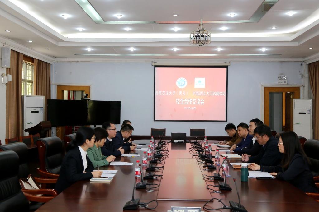 蒋磊介绍了中建四局土木工程有限公司发展历史、主营业务、工程技术创新成果、“十四五”战略方向及新业务开拓情况等。他说,公司立足粤港澳大湾区,坚持服务国家战略,推动企业转型升级。西南石油大学是国家首批“双一流”建设高校,学科实力强劲、人才力量雄厚。希望在前期合作交流的基础上,以战略合作协议签署为契机,进一步与学校深化合作,以学术交流、党建联建、项目合作为载体,不断丰富合作内容,拓展合作渠道,共同服务于国家高质量发展新篇章,树立校企合作新典范。