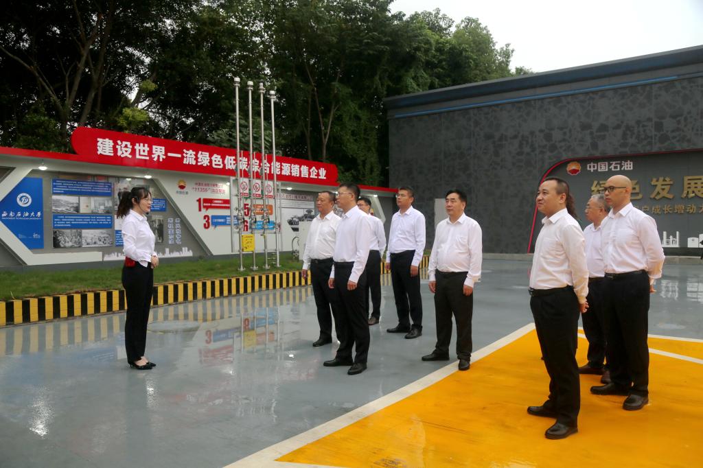 李勇介绍了中国石油四川南充销售分公司基本情况。他说,我们将围绕企校合作和实训基地建设,最大限度整合双方优势资源,为在校大学生提供一个良好的学习和实践平台。也将围绕新能源、新工科和新商科等专业优势,加快科研成果的孵化与运用,进一步促进我公司新能源转型升级和人才队伍结构调整,为合作的日益加深与巩固提供支持、保障。他表示,实训基地的投入使用,必将为双方合作交流创造更为便利的条件,也将在人才培养、科研合作等方面产生积极、深远的影响。我公司将与学校共同提高合作层次、扩大合作范围、挖掘合作潜力,力争创建国、省、市级大学生实践教育示范基地,为国家培养更多的专业人才,共同打造为企业所用、为社会所需的复合型人才,助推双方高质量发展、走出践行党的二十大精神的南充之路。揭牌仪式结束后,李德海在李勇的陪同下,参观了顺庆滨江综合能源服务站新能源充电区、文化长廊、便利店以及员工生活区,了解了该站功能分区、主营业务及运营模式,听取了中国石油四川南充销售分公司探索加油站数字智能化转型、推进产学研用情况介绍。