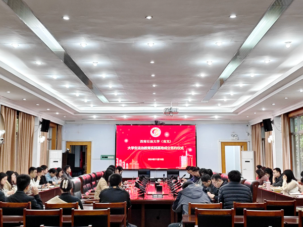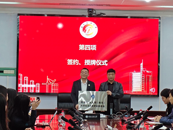为构建完善的校园法治教育体系,推动大学生法治宣传教育常态化长效化,进一步提升普法的针对性与实效性,11月18日上午,南充校区大学生法治教育实践基地成立签约仪式在通讯楼会议室举行。南充校区党委副书记郝江岭,学生发展部(团委)副部长秦明旺,四川绸都律师事务所高级合伙人、执行主任向杰峰出席签约仪式。学生发展部(团委)学生教育管理中心主任周欣欣主持仪式。