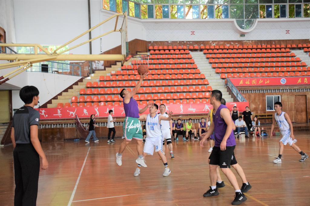 随着一声哨响,比赛正式开始。双方队员长传拼抢,远投突破,精准传球,篮球在空中划出一道道流畅的弧线,比分交替上升,南充校区以10分领先优势结束了上半场比赛。