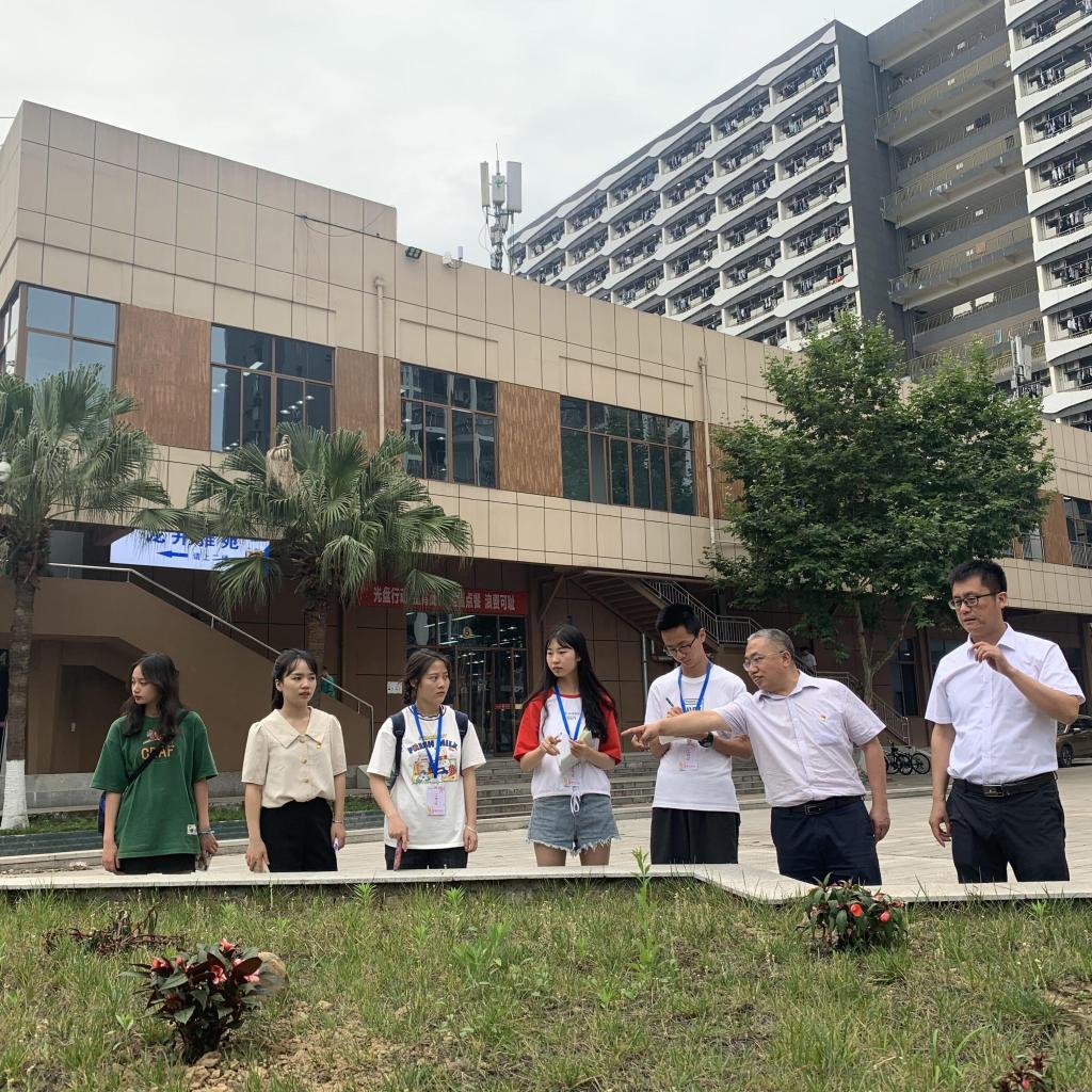 考察过程中,“学子花园”学生负责人汇报了花园名称、设计理念、后期维护及美化更新等情况。