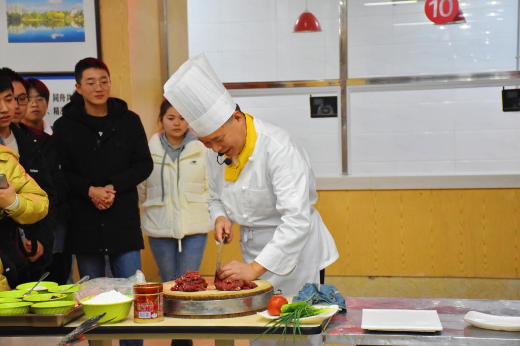 近日,中国文化饮食研究会餐饮传承委副秘书长、国家高级技师谢君宪应邀到校区为100余名学生讲授了《中国饮食文化》实践教学课。