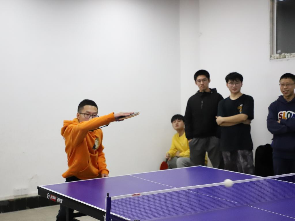 随着裁判员一声令下,比赛正式开始,每位参赛选手都全力以赴。在决赛阶段,光电信息科学与工程代表队一个低抛球,被财务管理代表队巧妙利用横板击回夺下第一分。接着继续发球,一板、两板,光电信息与工程代表队一个侧步跳立马直板反手下旋,扳回了比分。接着继续发球,旋球、拉球、高球;交叉步、并步跳、碎划步,参赛选手们展现各种精彩绝伦的乒乓球技巧。只见光电信息科学与工程代表队紧握球拍,努力接上对手的高吊球,看准他移步的空隙斜打了过去,“好球!”,观众喝彩声此起彼伏,现场掌声雷动,气氛一度达到高潮。