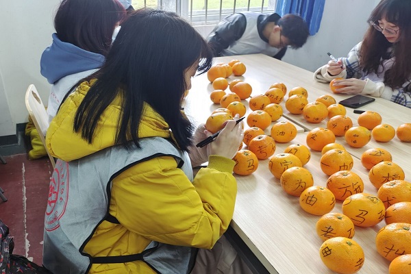 志愿者们制作小礼物,并留下对考研学子的美好祝福。圆滚滚的橙子是对每位学子在不久的将来“橙”功上岸的祝愿,甜蜜的棒棒糖是对学子们苦尽甘来的美好寓意。(文/工程学院 张运鑫 唐兰 邓皓天 尹卓 图/尹卓 汪韵畅 )