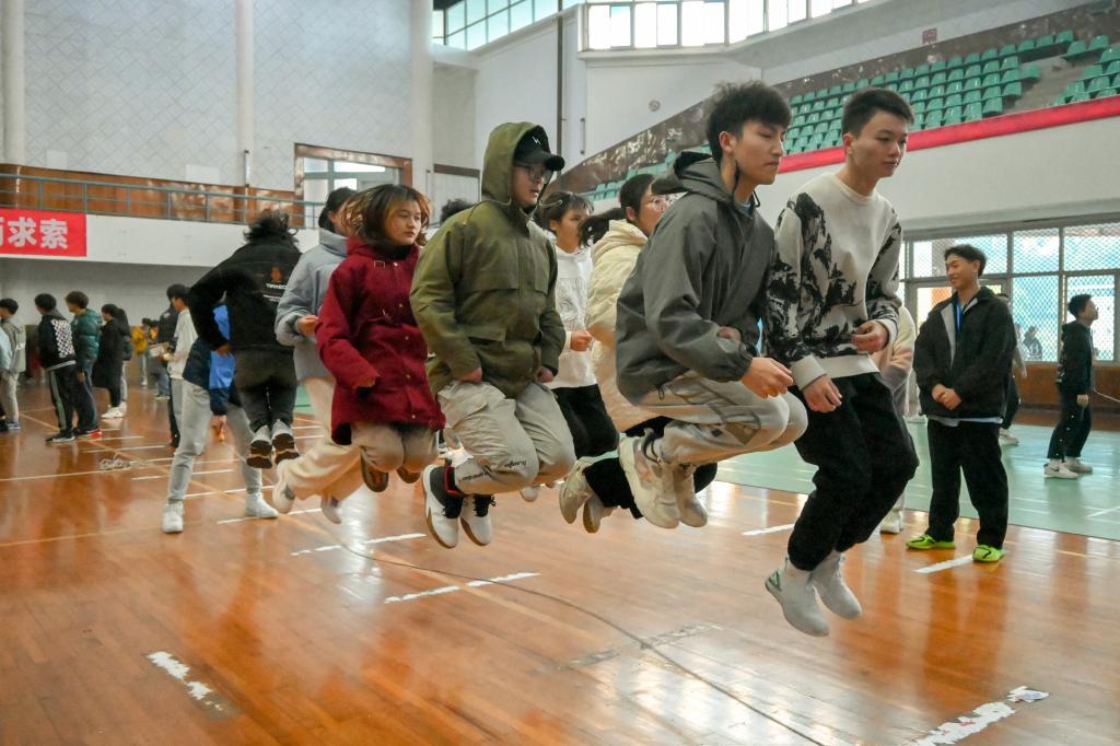 集体跳比赛期间,同学们跟着“一二三走”的口令,随着绳的摆动,默契地在地板上跳出整齐的节奏。八字跳比赛时,同学们灵活地在绳中穿梭,随着绳子的起落轻盈跳跃,展现了跳绳技术和速度、力量、灵敏及协调性的完美融合。场边观众积极呐喊助威,场上队员挥汗如雨,比赛精彩纷呈,气氛热烈。