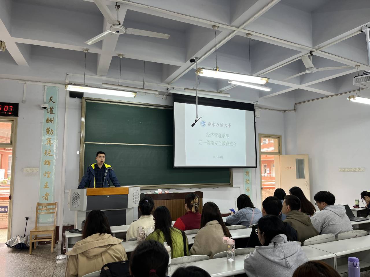 各专业年级辅导员重点围绕人身安全、交通安全、饮食安全、用电安全、防电信诈骗等方面内容作了讲解,并组织学生学习了疫情防控相关知识,嘱咐大家重视个人防护,做好自己健康的第一责任人,并强调了假期请假离校的流程、要求。同时,各专业辅导员还组织学习了《西南石油大学学生考试违纪、作弊处理办法》,强调了考试违纪、作弊的严重后果,要求同学们要端正考风、严肃考纪、诚信备考,用自己的努力争取优异的成绩。