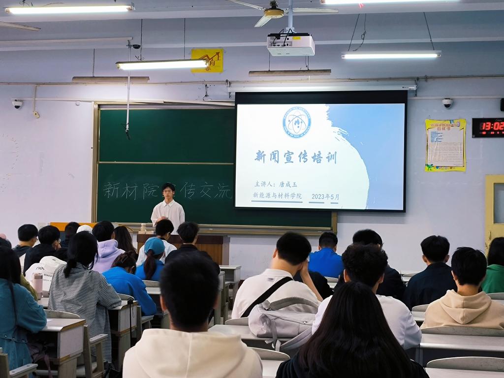为进一步提高学院团学干部的新闻写作能力,确保宣传工作有力有效开展,5月9日,新能源与材料学院在第四教学楼4306教室开展新闻宣传技能培训会,学院团学组织全体成员和各班组宣委员参加本次培训。培训会由学院辅导员唐成玉主持。