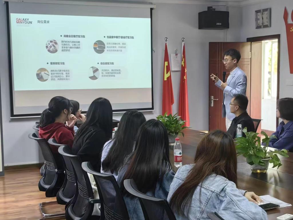 3月29日,成都中航明宇尚雅酒店管理有限公司在完井楼401举办招聘宣讲会。经济管理学院院长助理李治兵,毕业班辅导员胡朝伟和2020级、2021级学生参加本次宣讲会。