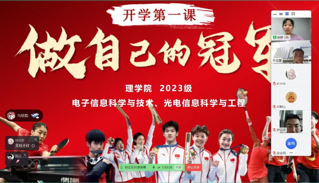 活动过程中,辅导员从“新的学期,快速收心”“立个目标,我能实现”“良好习惯,梦想加冕”三个板块,结合2024年巴黎奥运会中国奥运健儿们的高光时刻,号召同学们向奥运健儿们学习,在新的学期,调整心态、锤炼品格、培养习惯,树立新的目标,制定新的计划,勇敢做自己的冠军。辅导员就新学期开学报到、注册,资助工作,学年鉴定等相关工作做了安排。