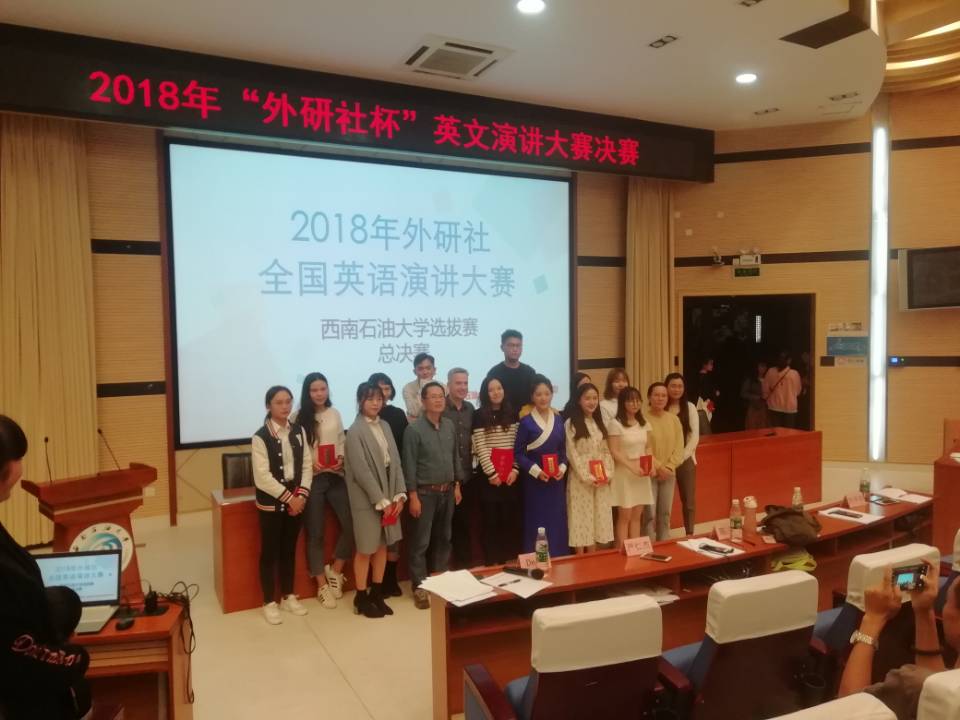 9月27日,2018“外研社杯”英语演讲比赛西南石油大学赛区决赛在成都校区思学楼A114举行。南充校区学生措祥玛和彭晴楠分别荣获二等奖和三等奖。