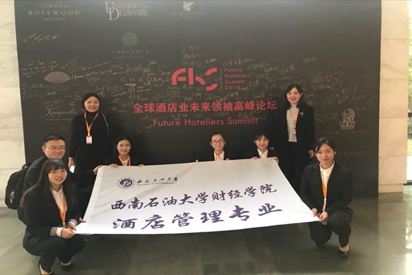 10月9日—12日,第一届全球酒店业额未来领袖高峰论坛在北京第二外国语学院中瑞酒店管理学院举行。南充校区财经学院肖怡然、张艳萍老师带领酒店管理专业2016级刘雪鹏、杨瑞、邱琳芮、黄思佳以及酒店管理2017级赵艺琳同学参加此次峰会。
