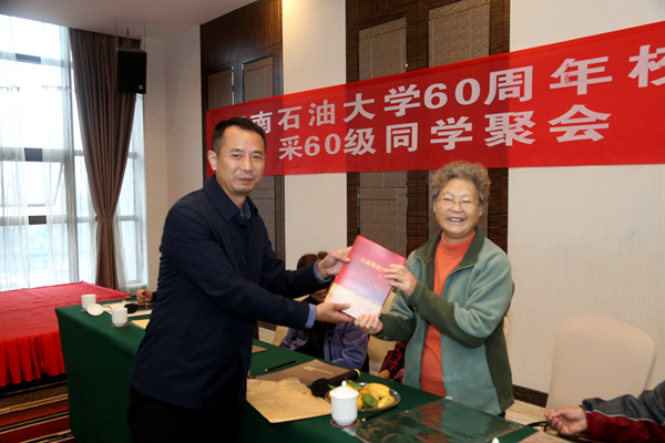 采油60级校友谢太浩还向南充校区捐赠了由他编著的著作《义勇军进行曲80年》,表达对母校60华诞的祝福,对母校培育之恩的感谢。(周煊涵)