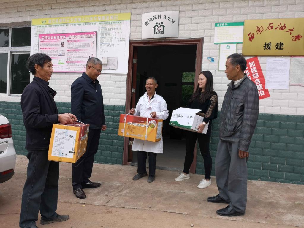 10月16日下午,王胜军一行来到鹅项颈村,查看了正在修建的文化广场和即将竣工的人饮工程建设,向该村卫生室捐赠了医疗设备和药品,并与全村60户脱贫群众进行座谈。座谈会上,王胜军表示,鹅项颈村虽然已经退出贫困村系列,贫困户已全部脱贫,但西南石油大学仍然会一如既往地关心该村的建设和发展,会继续帮助村民解决生产生活中的实际困难,以确保脱贫效果持续稳定,防止返贫。