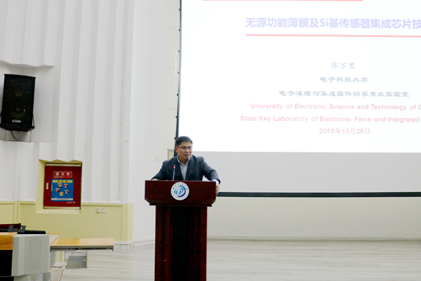 10月28日晚,无源功能薄膜及Si基传感器集成芯片技术学术讲座在4317教室举行。本次讲座由电子科技大学博士生导师、电子科技大学电子科学与工程学院常务副院长、微电子学院院长张万里教授担任主讲,工程学院院长谌贵辉以及机械电子工程、光电信息科学与工程、电子计算机工程等相关专业的同学参加了此次讲座。
