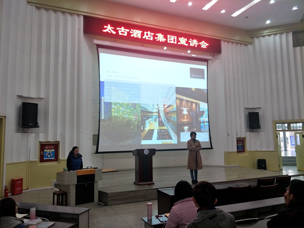 座谈结束后,为了让同学们更全面地了解酒店行业发展现状,太古酒店集团在财经学院的协助支持下,在第四教学楼4317教室举办了太古酒店集团宣讲会,酒店管理专业师生参加了宣讲会。宣讲会上,太古酒店集团旗下的三家知名酒店——北京东隅酒店、北京瑜舍酒店和成都博舍酒店分别作了宣讲,详细介绍了各自酒店的基本情况和运营现状、未来发展目标等。宋丹还强调了英语运用能力对酒店管理从业者未来发展的重要性,并耐心回答了现场师生的提问。(财经学院)