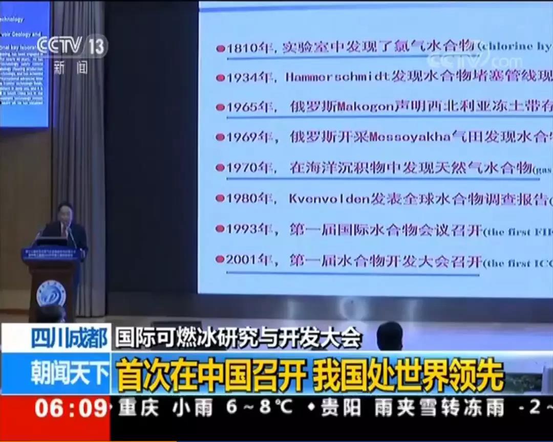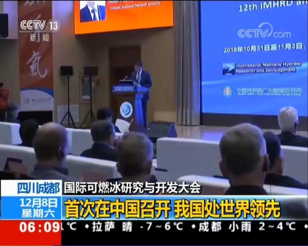 12月8日上午6:09,中央电视台CCTV-13新闻频道以《国际可燃冰研究与开发大会首次在中国召开 我国处世界领先》为题,用1分8秒的时长报道了在我校举行的第十二届世界天然气水合物研究与开发大会,以及我校在可燃冰研究方面所取得的成就,这表明我校在天然气水合物研究与试采领域做出的突出贡献得到了国际社会的广泛认可。