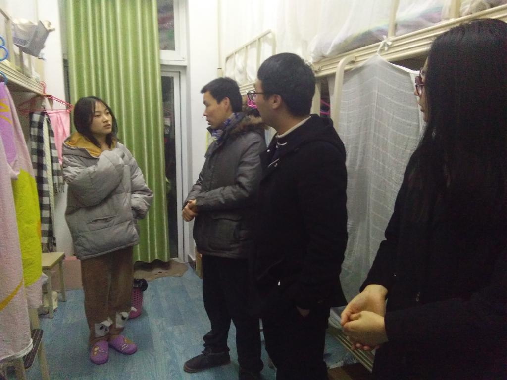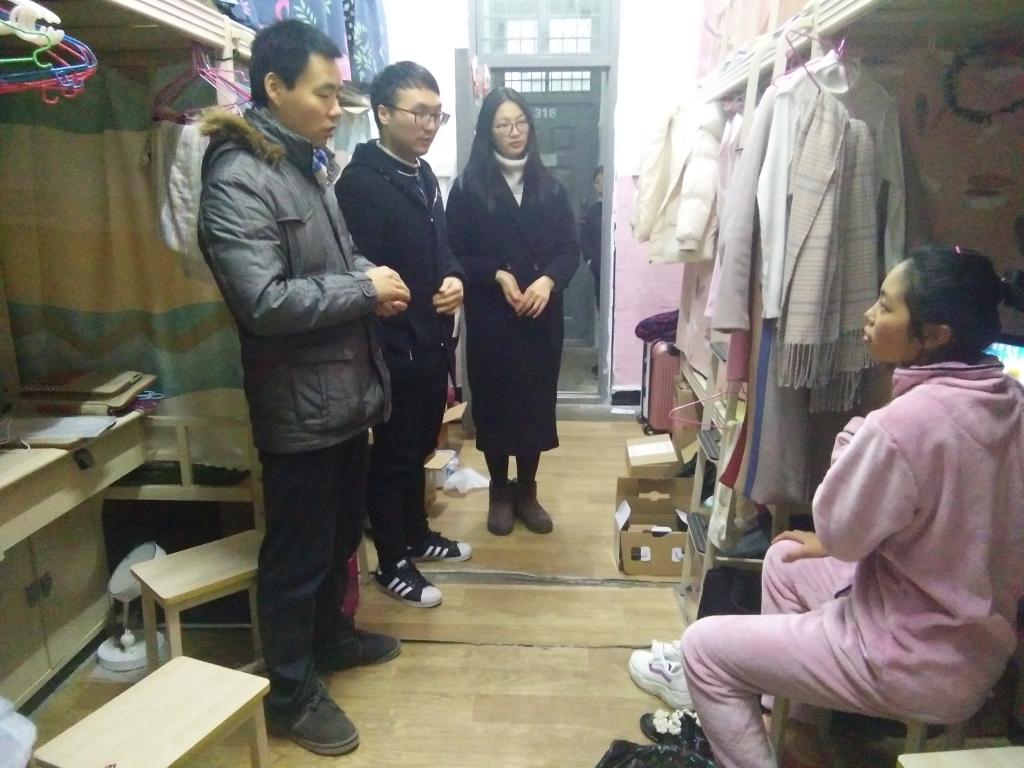 为全面掌握学院学生的离校情况,排查寝室安全隐患,增强同学们的安全防范意识。1月16日晚,财经学院组织学院辅导员到宿舍开展学生离校情况和安全检查,学院团总支副书记、学生工作办公室副主任杨智光,辅导员谢曜励、曾和丽参与了检查。