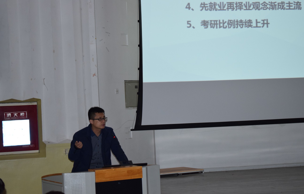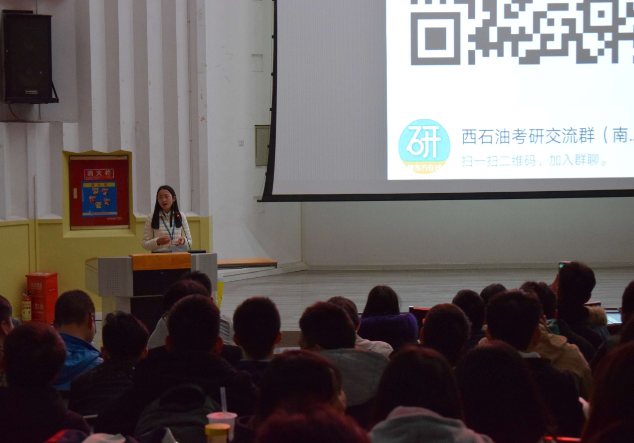 会上,胡丹向同学们介绍了学院为考研同学准备的专用自习室、图书室,要求大家要两手准备,增加个人就业优势。梁军刚对同学们进行了就业指导。他从目前就业形势、就业准备和就业选择、国家就业相关政策以及个人应对措施方面做了详细讲解。梁军刚老师说,同学们要从现在开始,瞄准就业,提升自身能力,准备就业。唐华琼老师向同学们介绍了不同专业研究生进入复试的成绩要求、理学总分国家线的趋势。在院校选择方面,她介绍了川内几所院校的情况,在专业方面,她介绍了信息专业所适合考取的院校。蒲松老师列举分析生动有趣的实例,重点讲解了考研英语的备考和应试方法。她还告诉同学们要注重词汇积累,练习真题,认真复习备考。最后,石油化工生产专业学长李成龙向同学们分享了学习和成长经验。