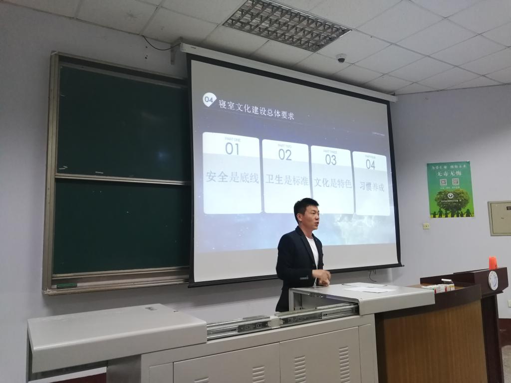 学院学生会生活与自律部部长对近期工作作总结发言,希望学院学生寝室室长能够认真履职尽责,加强寝室优良学风建设,加强寝室管理,严格执行寝室卫生标准,强化安全防范意识,为室友营造良好的学习生活环境。(信息学院 文/赖贤鑫 郑金鑫 图/赖贤鑫)