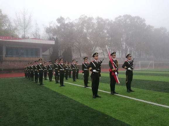 迎着四月的朝阳,国旗护卫队的同学身着军装,他们英姿飒爽,步伐统一,目光坚定地注视着前方,护旗手一人举着国旗,迈向升旗台,一步一顿,整齐的声音让人肃然起敬。