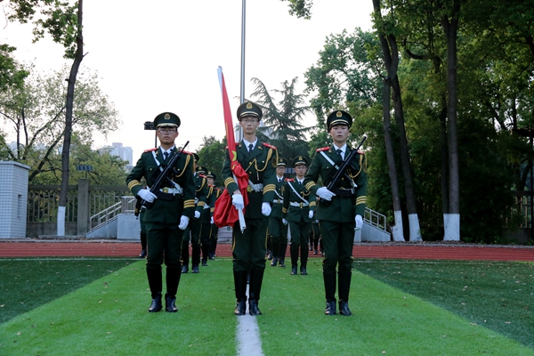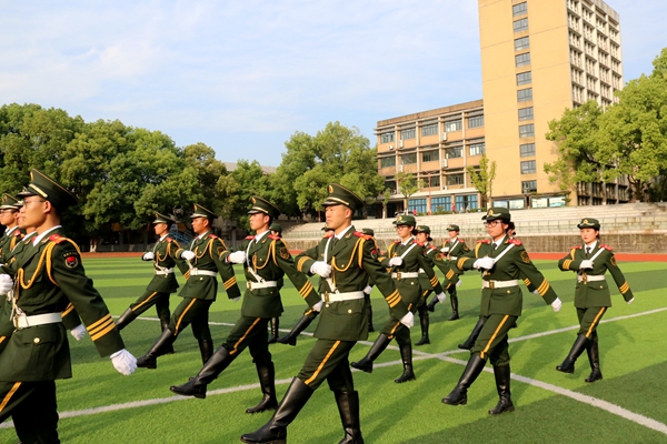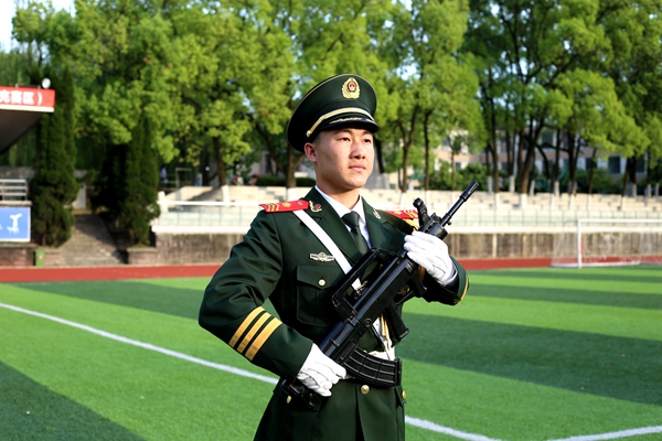 国旗护卫队何源说:“在我们作为国旗护卫队新兵的时候,每周六会训练一整天。而这学期周六的时间被一分为二了,上午依旧是严格的训练时间,下午就组织外出团建,劳逸结合。这不仅有助于训练,还能增强大家的团队意识。”