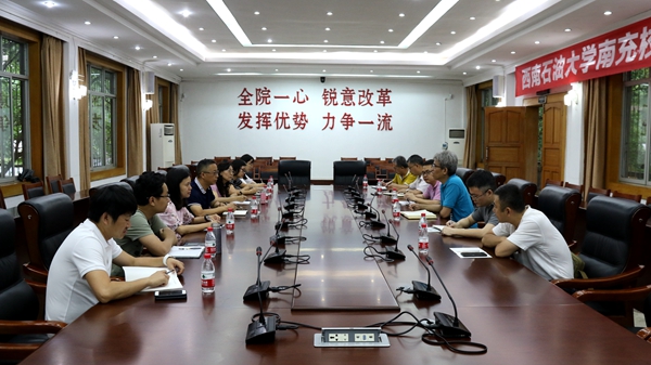 6月11日,学校网络与信息化中心直属党支部书记肖晓华、中心主任蒲和平一行7人到南充校区调研指导网络信息化建设工作。校长助理、南充校区常务副校长赵刚主持座谈交流会。