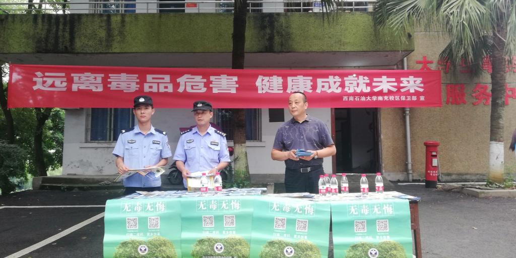 6月24日下午,保卫部联合顺庆公安分局石油南路派出民警、大学生志愿者,在校区举办了以“远离毒品危害,健康成就未来”为主题的禁毒宣传教育活动,以此迎接第32个“国际禁毒日”的来临。