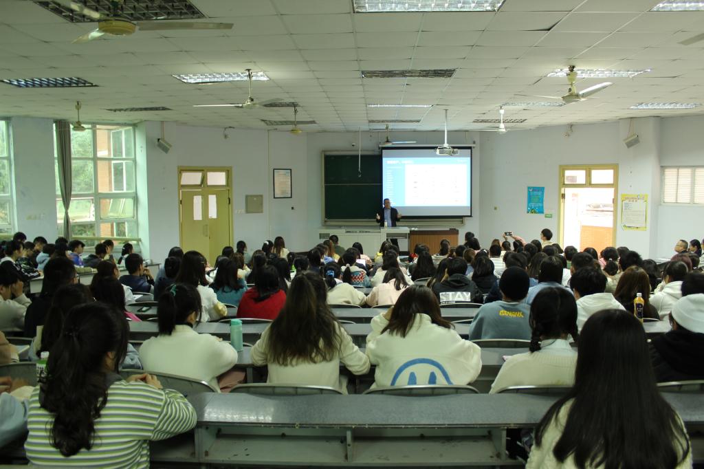讲座结束后,乐志军与同学们交流互动,耐心回答同学们的提问。(大学生全媒体中心/苏东海 实习记者:向凤雪 陈京 图/赵磊 范家仪)